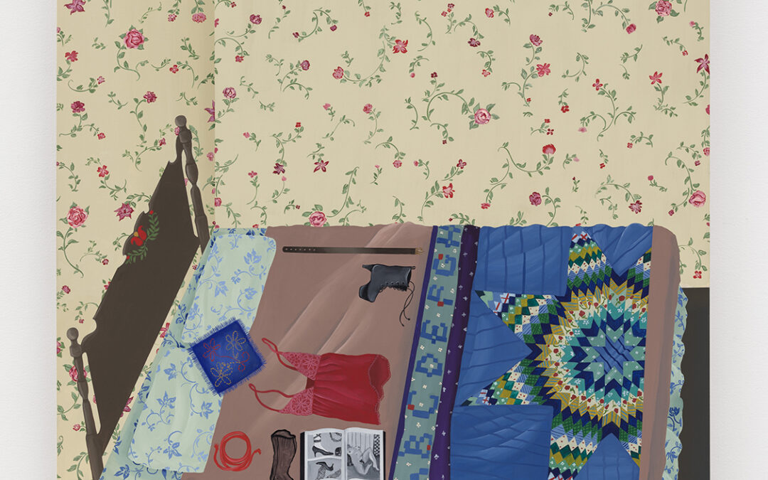 Anne Buckwalter‘s creative practice explores the intersection of sexuality and domestic life. Inspired by the folk art traditions of her Pennsylvania Dutch heritage, her paintings arrange disparate objects in interior spaces, integrating the erotic with the mundane. By imagining obscure narratives that embrace paradoxes, Buckwalter’s work delves into questions about the body, femininity, and desire. These deeply personal subjects are interesting to her both in how they relate to her own lived experiences as well as how they are contextualized within a larger socio-cultural dialogue. She sees her work as self-portraiture—her paintings reference her memories and fantasies—but she also considers how her work contributes to a broader conversation around normalizing female sexuality, celebrating sexual diversity, and eradicating erotic shame.