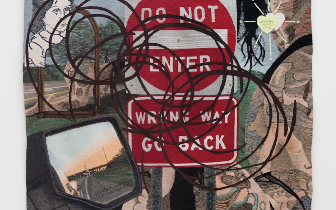 Image: Erin M. Riley, Look Back At It, 2024. Wool and cotton. 85 x 77 inches. Image courtesy of the artist.